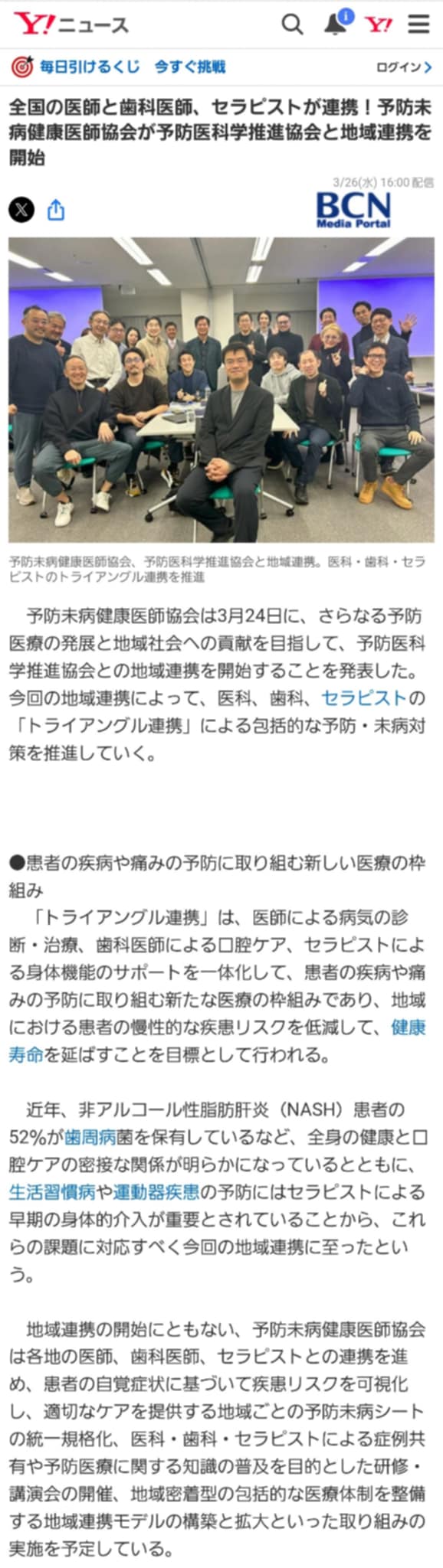 予防未病健康医師協会との共同プレスリリースがYahoo!ニュースなど大手メディアに掲載