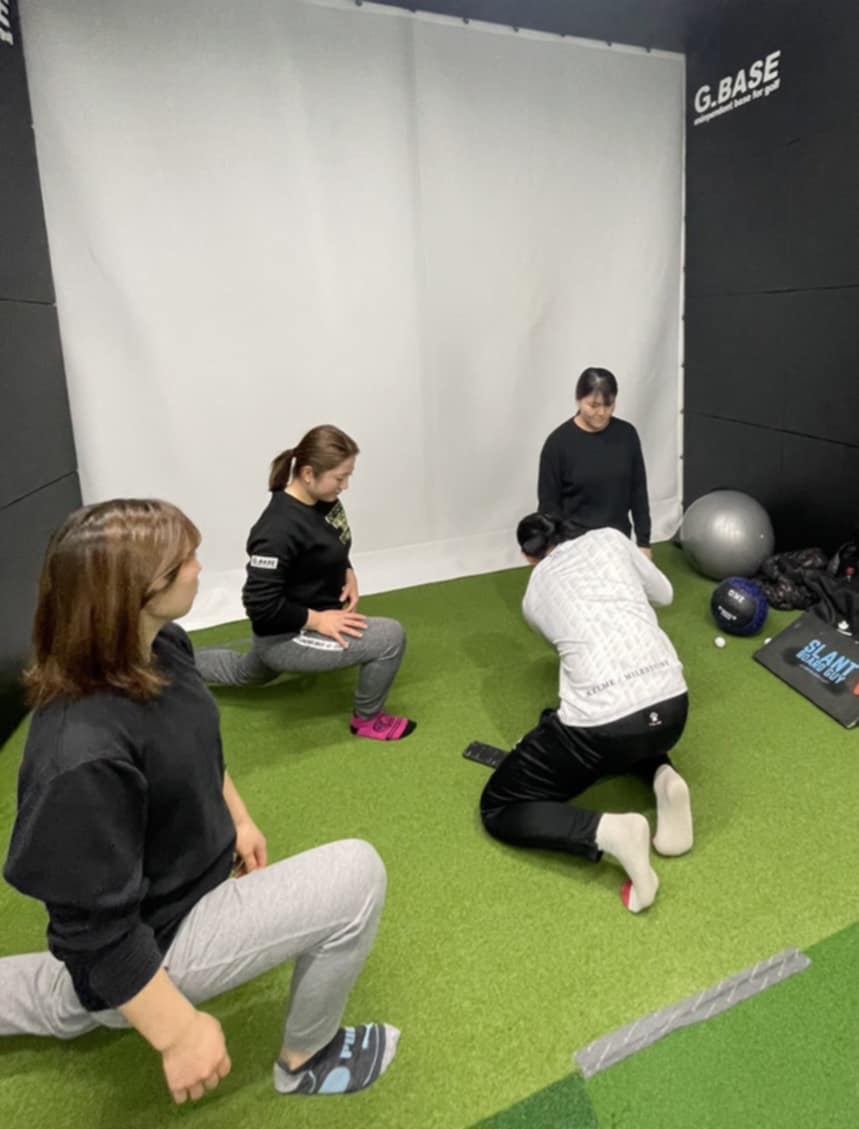 「ゴルフの辻村コーチとアメリカのATG exercise指導者の小塚先生を交え関節を使ったゴルフの訓練」を育成プロに指導しました